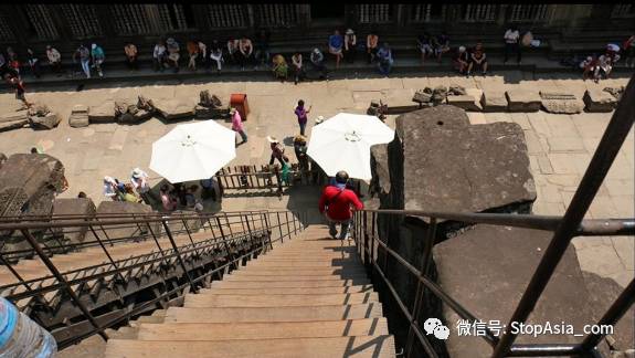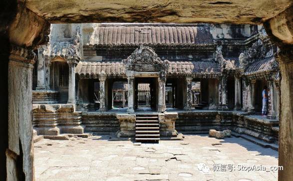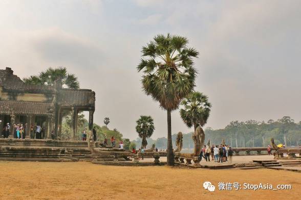 吴哥建筑群里保护得最好的小吴哥庙,四面环水,进正门要穿过天界桥,又名彩虹桥。