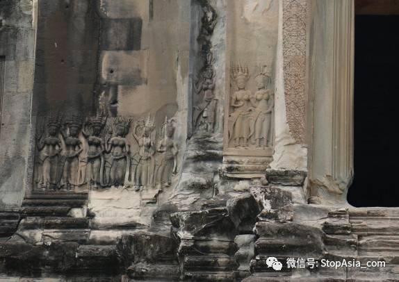 每一处都雕满了华丽的花纹和故事。跳起来的仙女apasara,由水沫生成。