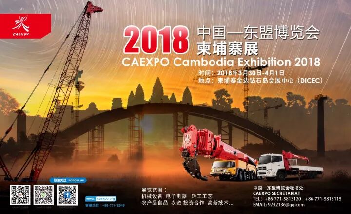 为了帮助中国企业更好地展示产品及企业形象、了解柬埔寨贸易政策、投资环境和合作前景,共享商机,2018东博会柬埔寨展将于2018年3月30日—4月1日在金边钻石岛会展中心(DICEC)举办,主要展示机械设备、电子电器、轻工工艺、农产品食品、农资、投资合作、高新技术等内容。展览期间,还将开展贸易和投资合作项目对接活动等。