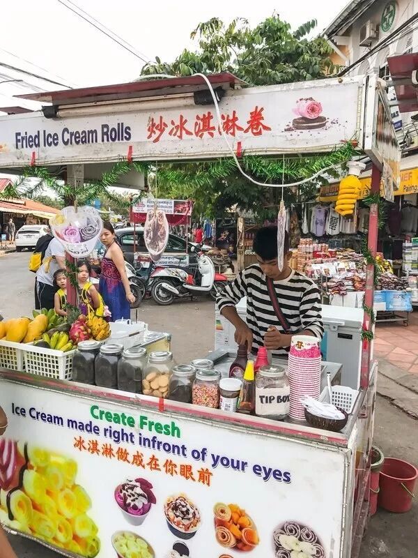 楼下的小吃还是蛮多的 出乎意料的是遇到了中国式炒冰淇淋