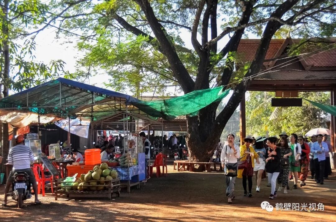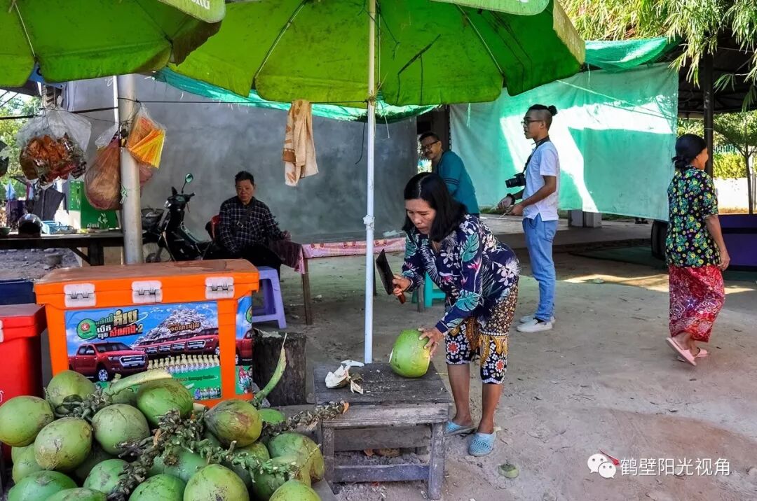 村里各式各样的水果摊很受游客欢迎。这里的水果价格不贵,一个椰子4000瑞尔,合人民币8块钱。