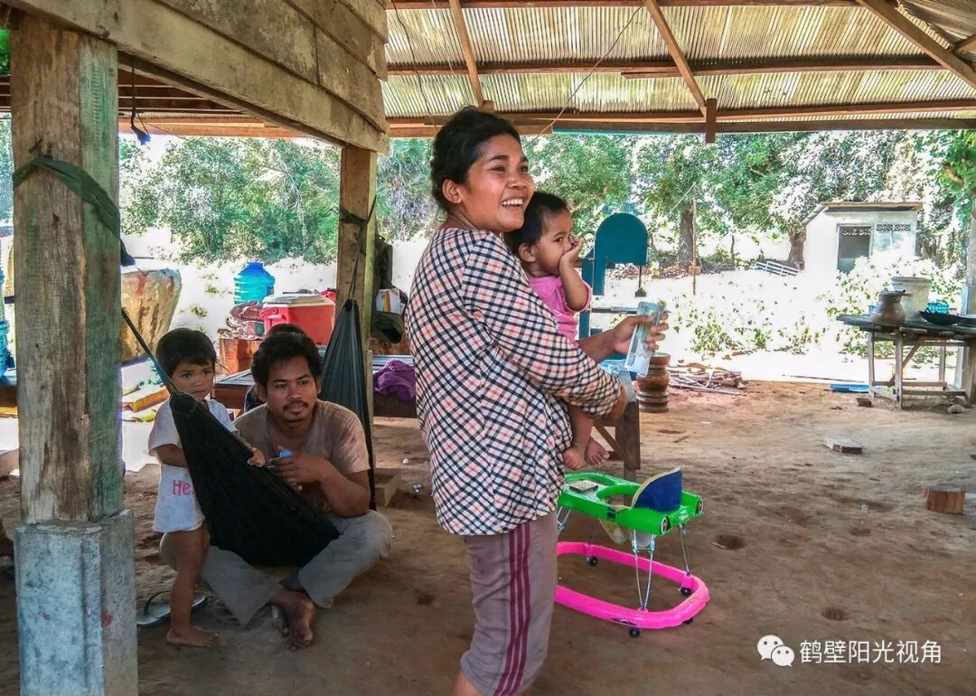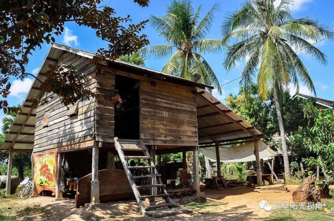 从大榕树村返回暹粒市的途中,我们看到沿路有许多柬埔寨农家的吊脚楼,大家都想走进真正的柬埔寨农家看看。征得导游同意后,旅游巴士停在了路边,我们一行来到了这户农家。