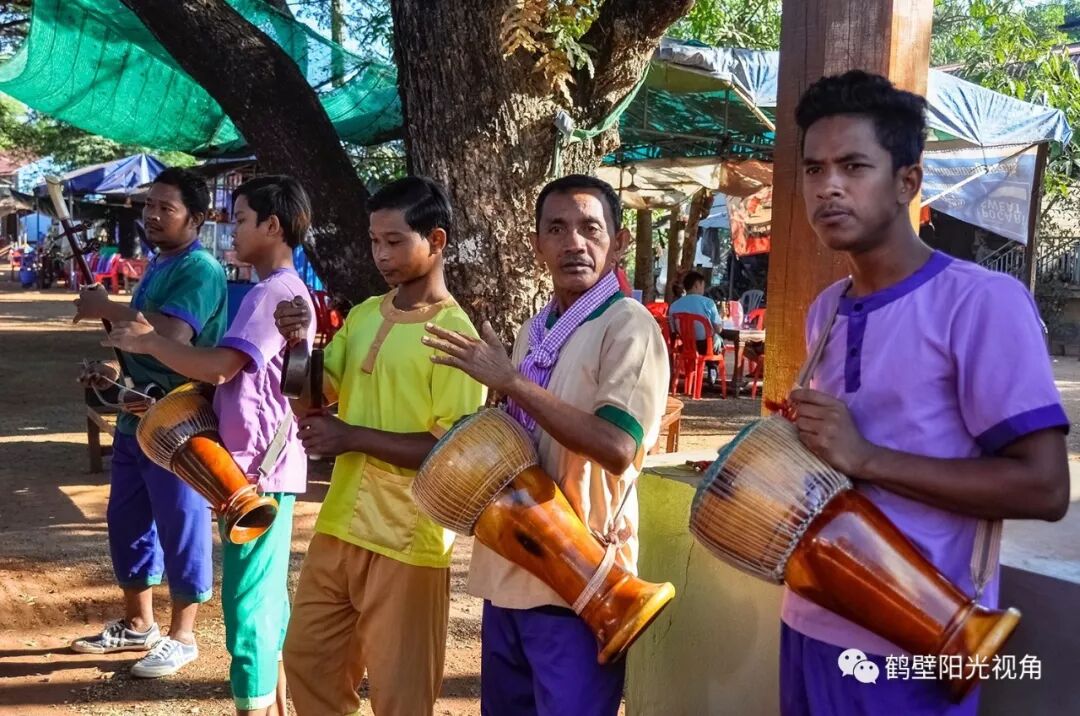 大榕树村培训了许多自己的导游,他们都能说一口流利的汉语。我们在村导游的引领下入村参观。一支具有当地民俗特色的小乐队夹道欢迎我们的光临。