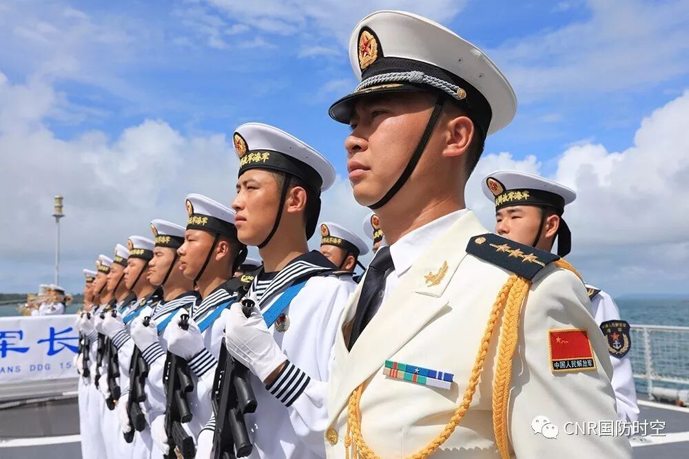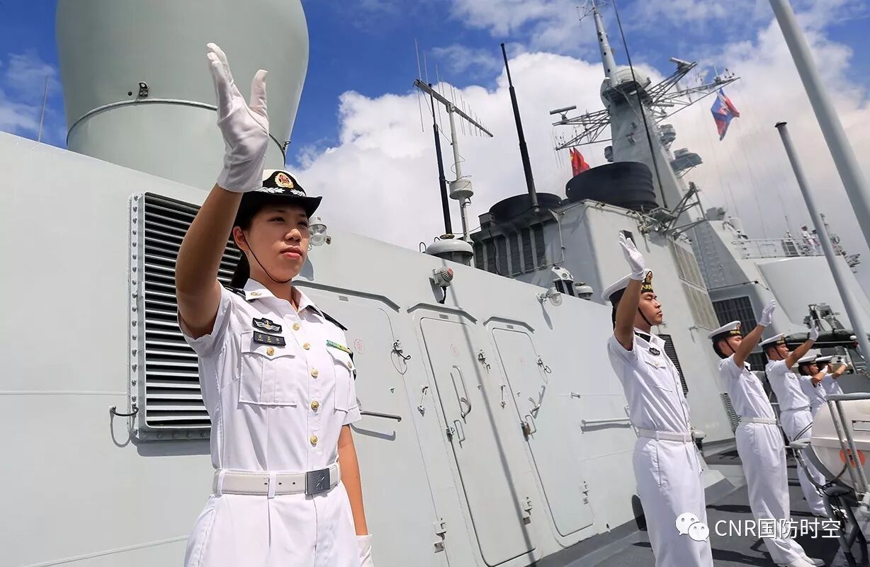 长春舰女兵向码头欢迎队伍敬礼(禹威摄)