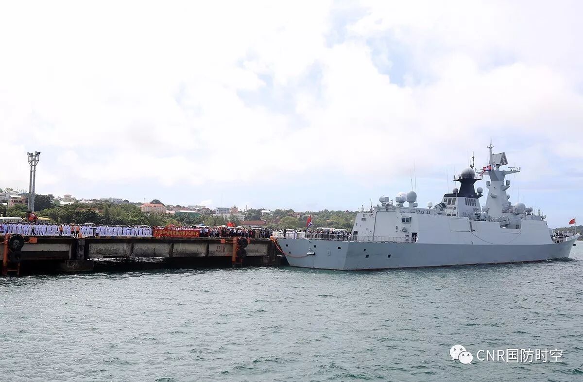 中国海军远航访问编队荆州舰靠港。徐晓羽摄