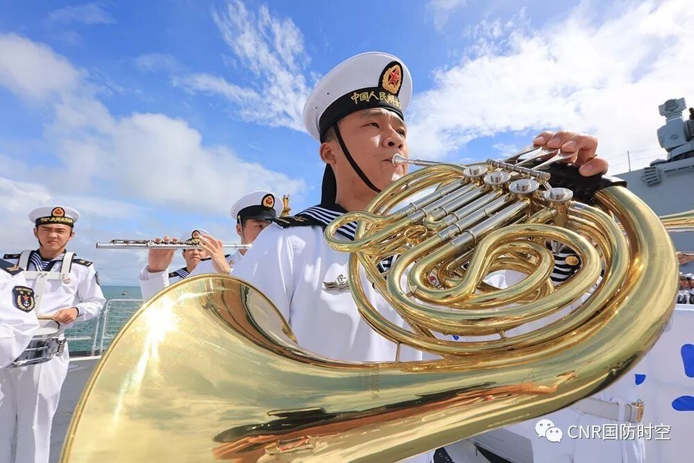 军乐队吹奏欢快的乐曲(史奎吉摄)