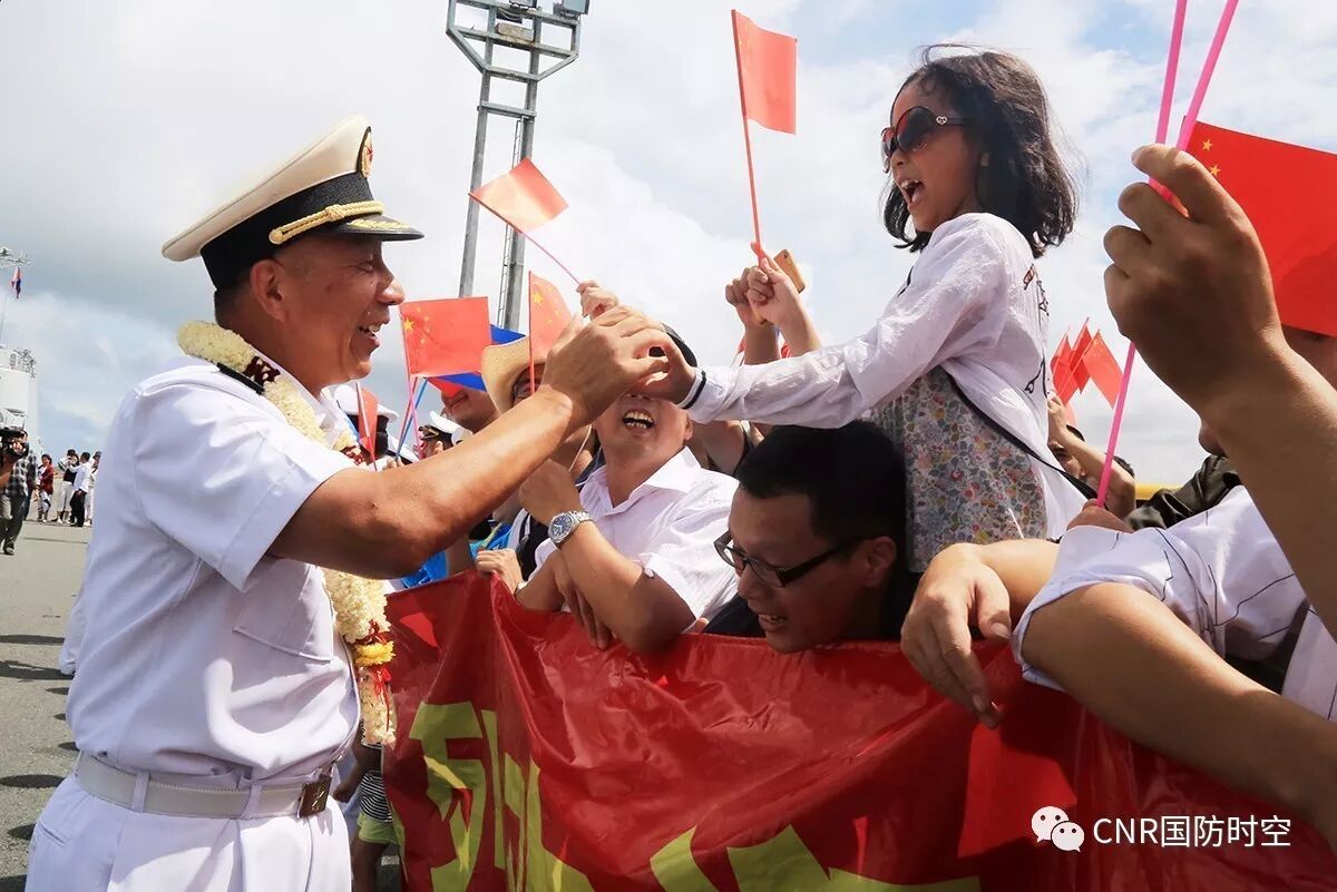编队政治委员徐平和华人华侨握手(史奎吉摄 )