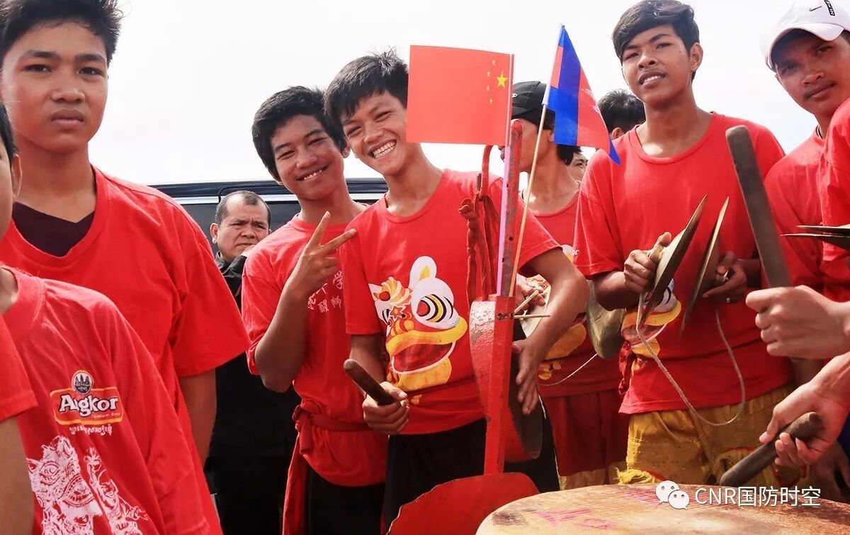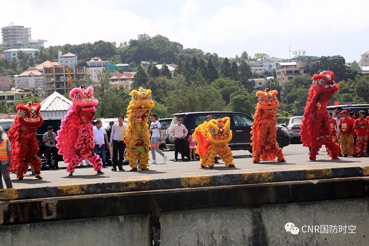 柬埔寨青年舞狮欢迎编队来访 (徐晓羽摄)