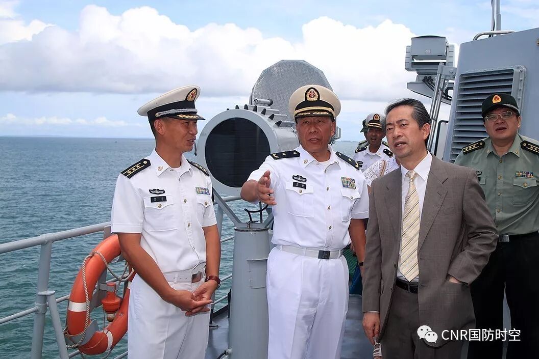编队指挥员沈浩陪同中国驻柬埔寨大使熊波参观长春舰(禹威摄)