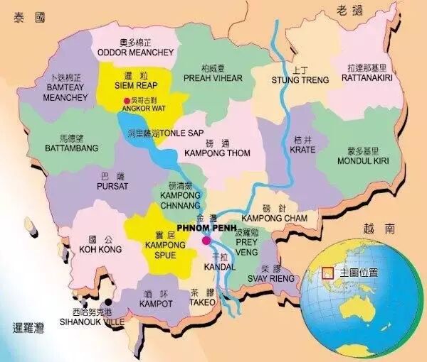 柬埔寨位于亚洲东南部的中南半岛南部。东部和东南部同越南接壤,北部与老挝相邻,西部和西北部与泰国毗邻,西南濒临泰国湾。寺庙里的低语,神秘的千年微笑;浮雕石刻,英勇战象;这是一个静谧的古老国度。