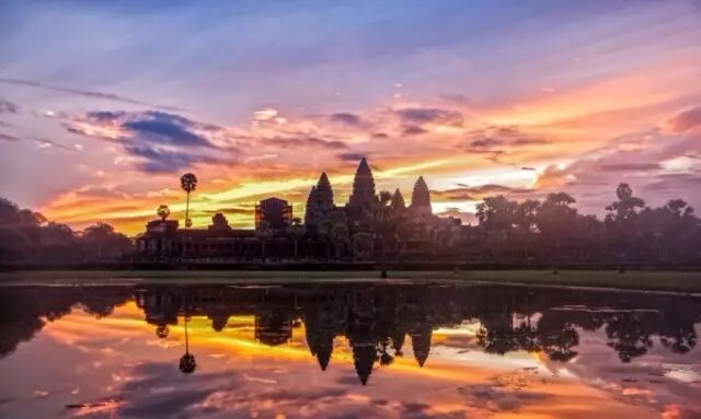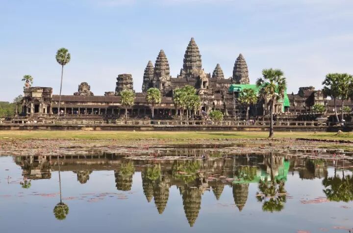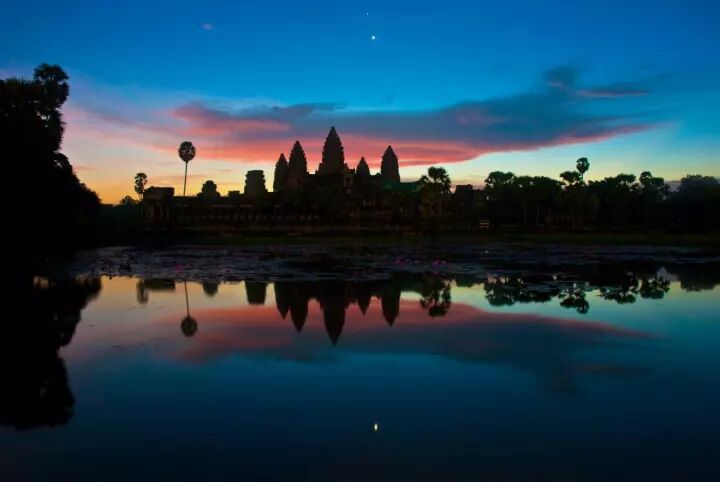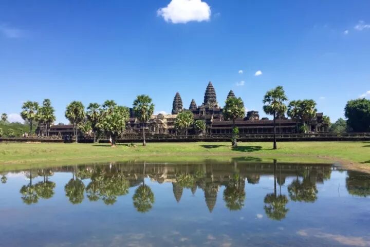 Angkor Wat(吴哥窟,俗称小吴哥)建筑群是 Angkor 古迹中保存最完整的,五座莲花塔倒映在一片水塘前,的神圣在这里延续。