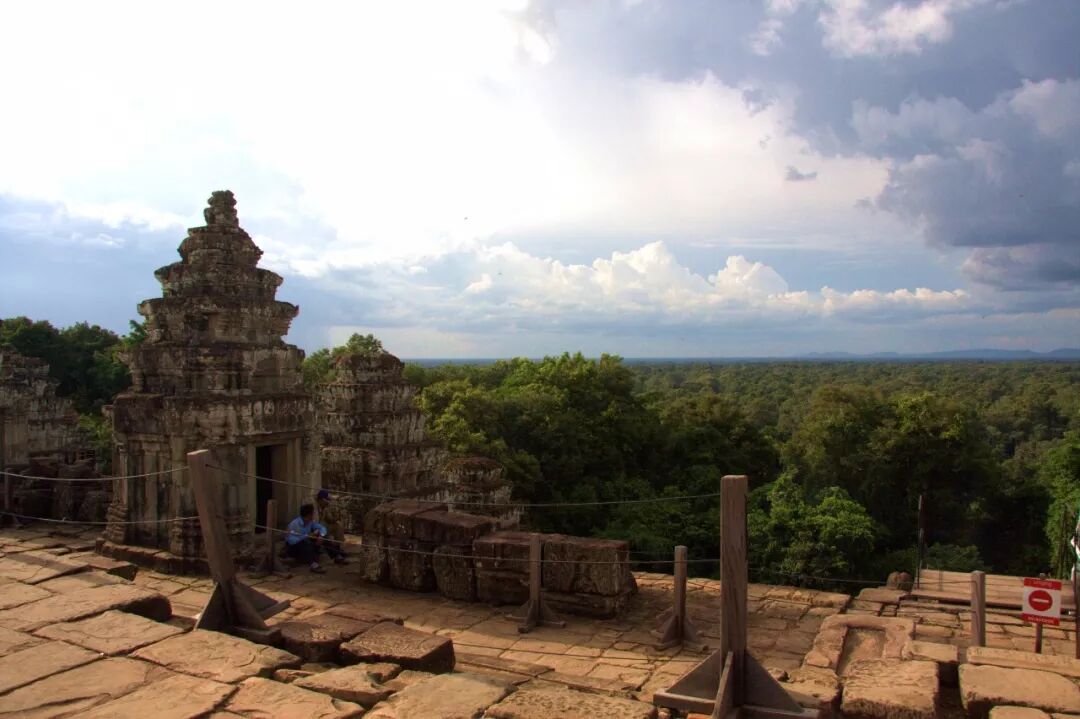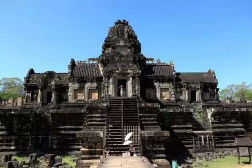 Phnom Bakheng(巴肯山)是在吴哥窟西北1.5公里处的一座小山,高约70米,虽不高,却已然是附近唯一的制高点。山的西边是开阔的西池(West Baray),东南方丛林中是吴哥窟,从巴肯山顶可以居高临下俯瞰吴哥窟。