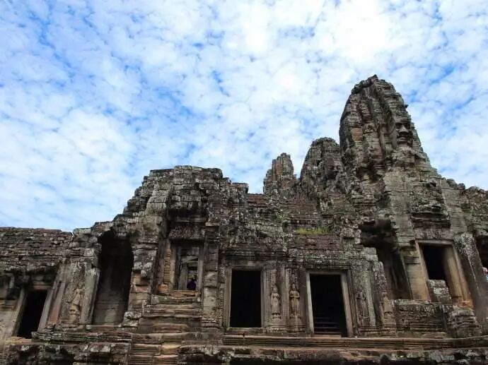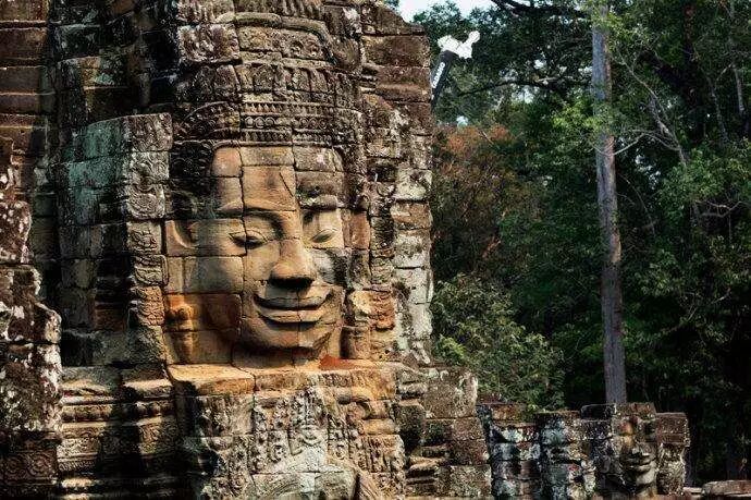 Angkor Thom 的中心是 Bayon(巴戎寺),也称高棉的微笑。每座矗立的塔都有四面佛像浮雕,佛家的慈、悲、喜、善在这里延续。