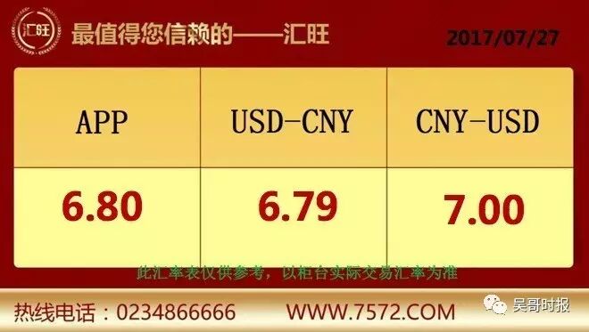 汇旺人民币/美元最新汇率