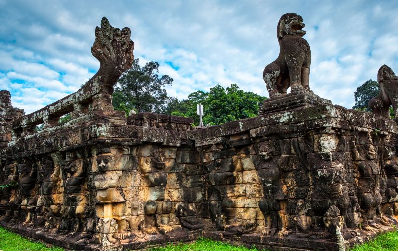● 首先带您畅游【大吴哥】城区(游览时间不低于2小时);大吴哥城共有五座城门,城门高20公尺,城门上雕有四面佛像,在进入都城前,远远便会看到高达七公尺的大石城门上头,四面都刻着吴哥王朝全盛时期国王加亚巴尔曼七世的面容,此与印度教不同的是此乃象征眼观四路耳听八方的四面佛菩萨。前往参观【塔普伦庙 Ta Prohom】(游览时间不低于30分钟),电影(古墓丽影)以此为场景拍摄,有巨大的树木盘结在围墙庙门口,更视为奇观。百年老树缠绕着千年奇石,彷佛爱恨纠缠般的浪漫。接着进入城中参观由54座大大小小宝塔构成一座大宝塔的【巴戎庙】,每一座塔的四面都刻有三公尺高的加亚巴尔曼七世的微笑面容,两百多个微笑浮现在葱绿的森林中,世人称之为「高棉的微笑」。前往参观吴哥城里的【吴哥古皇宫】,此处为加亚拔罗曼七世之祭祀地点,,内有古时判官及麻疯王雕刻建筑。接着参观【斗象台】此乃古时皇帝挑选座骑的地方、及【12生肖塔】此乃古时走钢索卖艺表演的地方。