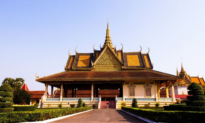 ● 抵达后游览金碧辉煌的【皇宫】(参观60分钟)(如遇柬埔寨节假日,皇宫不对外开放,将改为外观,并改为参观【国家博物馆】,恕不另行通知),这座建于1866年的王宫目前仍然是国王的宅邸。在王宫里,我们可以参观到近数百年来皇家收受的珍贵礼品,祖母绿玉佛、镶满钻石的金、铜、银佛等,令我们联想起柬埔寨昔日繁华富有的景象。前往金边市的著名的城市标志—【独立纪念碑】(参观约10分钟),金边市名称由此而来的【塔仔山】(又名钟形塔)(参观20分钟),此处为金边市之地标,也是当地人祈求好运的地方,登上塔顶可以欣赏金边市容。
