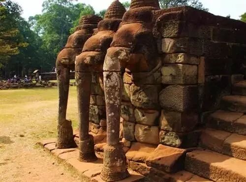 【斗象台】是古代国王接见外宾的亭台,也是当时吴哥国王挑选坐骑与节庆时观赏斗象表扬的地方。