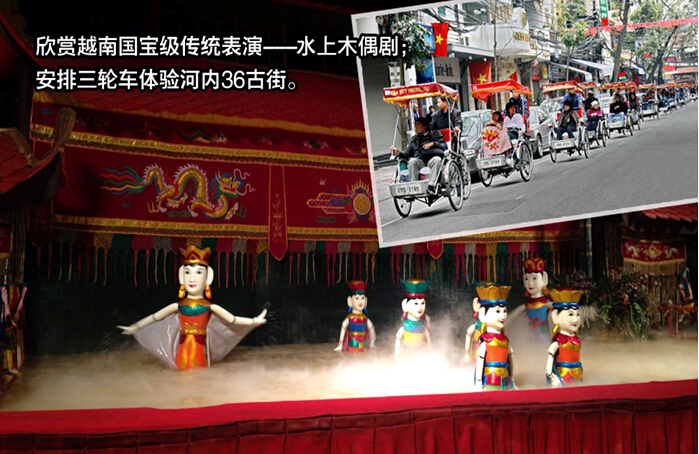 ★ 欣赏越南国宝级传统表演--水上木偶剧,安排三轮车体验河内36古街;