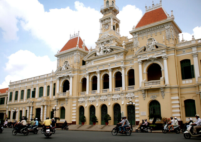 早餐后前往洞里萨湖,【洞里萨湖Tonle Sap】为东南亚第一大淡水湖,是柬埔寨的生命泉源亦是重要的渔获来源,面积非常辽阔。而具代表性的水上人家是最为特殊的人文景观,其居民世世代代都在水上生活,在这里您可看到缩小版的陆地生活。船屋上可捕鱼、种菜、养猪;而陆上所有的设施也都应有尽有,举凡医院、加油站、学校、百货公司、儿童乐园等…只要我们陆上周遭生活有的,水上生活也都一样不缺少,让人叹为观止。【吴哥窟艺术学校】,由法国人提供训练柬国青年一技之长的场所~并了解艺品制作过程。午餐后乘飞机赴越南第一大城市胡志明市,旧称“西贡”曾是法国殖民地。有“东方小巴黎”美称,它拥有如欧洲城市般的古朴浪漫。抵达后参观已有百年历史的【天后宫】,接着参观【圣母大教堂】整个建筑用红砖建成因此称为红教堂,是胡志明市市最著名的地标。建造教堂的红砖全部从法国运来,至今没有丝毫褪色.