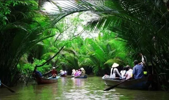 乘车前往位于湄公河下游的乡野之庄美托,(乘坐手摇的独木舟穿行于越南美丽的热带雨林中、简朴宁静的世外桃源,让您的感觉会变得更加真切而难以忘怀。尽享一派美丽的田园风光。)中餐享用湄公河特色象鱼餐。晚上乘船游览美丽的西贡河。