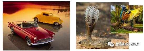 第二日:参观山顶高端汽车博物馆,。也可前往蛇馆,参观种类繁多的眼镜蛇, 众多会说话的鹦鹉,还有成群的鳄鱼,小小的动物世界也别有趣味。