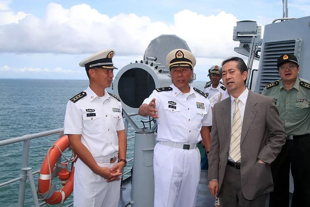 编队指挥员沈浩陪同中国驻柬埔寨大使熊波参观长春舰