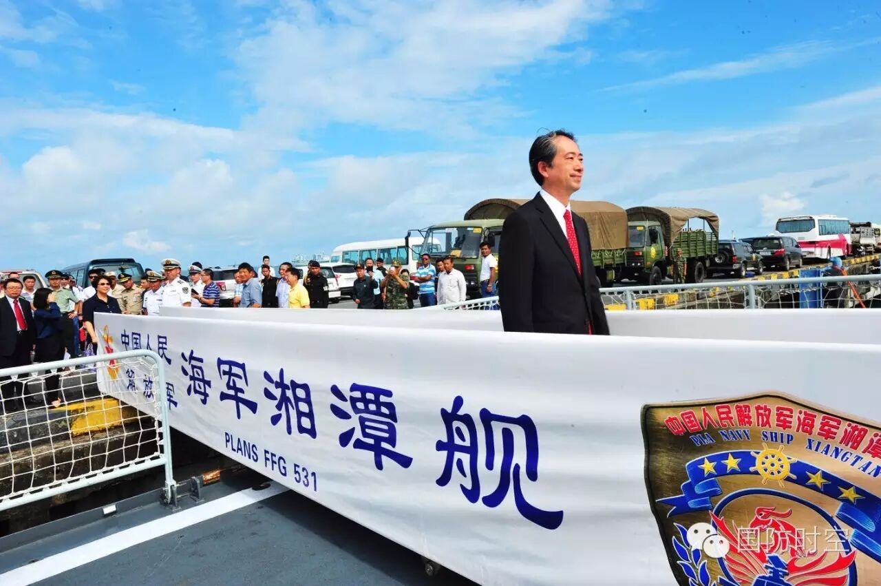 当天下午,。柬海军司令迪文上将参观了编队舟山舰、巢湖舰,并出席编队举行的甲板招待会。