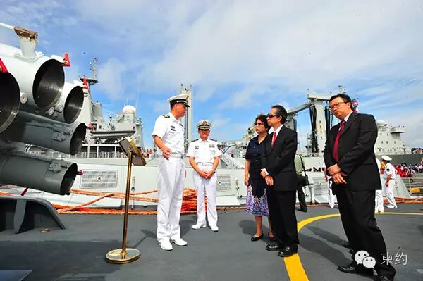 当天下午,。柬海军司令迪文上将参观了编队舟山舰、巢湖舰,并出席编队举行的甲板招待会。