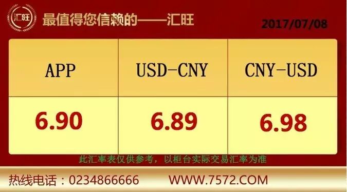汇旺人民币/美元最新汇率