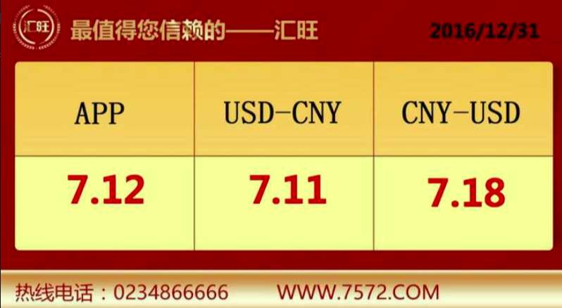 汇旺人民币/美元最新汇率