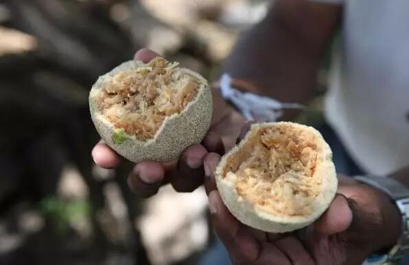 外壳坚硬,建议切成一半后用勺子挖果肉吃