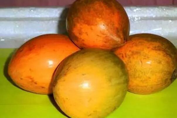 形状如人心,鸡蛋大小,果皮呈褐色。微甜,无任何酸味