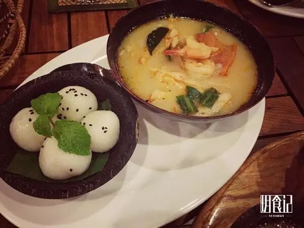 依旧是喝不厌的冬阴功汤,甜品是类似没有汤底的汤圆,馅料过甜我放弃了。