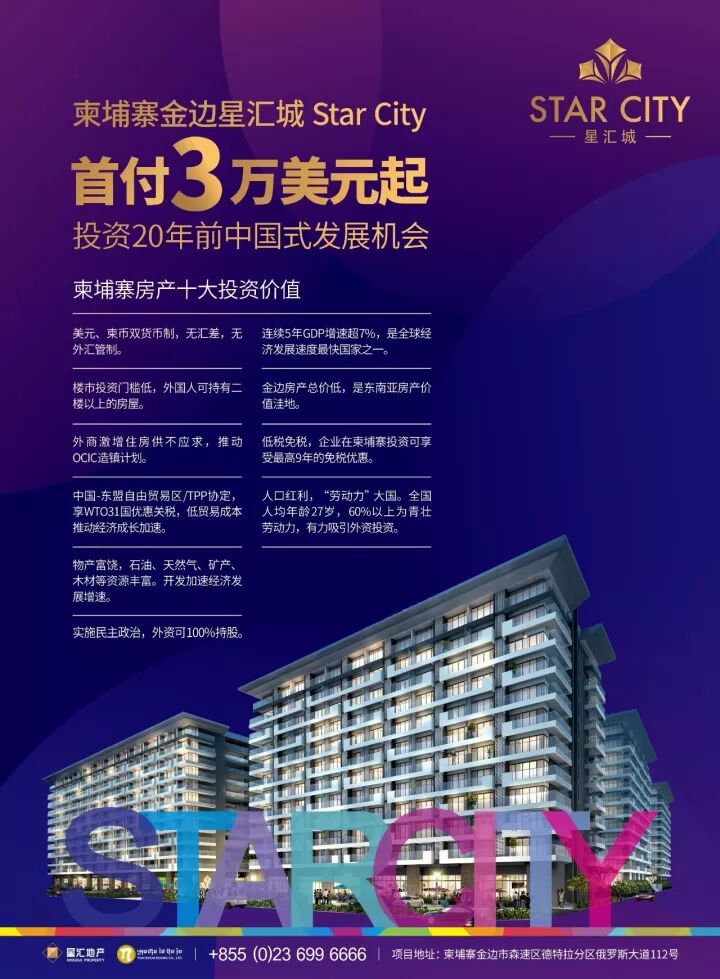 现在已有不少精明的投资者开始筹划购买住宅或写字楼等物业。以位于森速区核心的星汇城Star City为例,该社区位于金边主干道——俄罗斯大道,毗邻金边国际机场、高架桥入口,现又增添了靠近云轨的交通优势,投资价值再次攀升。一名从中国大陆来到星汇城考察的财富看房团成员表示,预计云轨正式开工后,地价、房价、租金都会继续飞涨。“上亿美元的大项目,还有大政策支持,跟着“国家队”投资准没错!”
