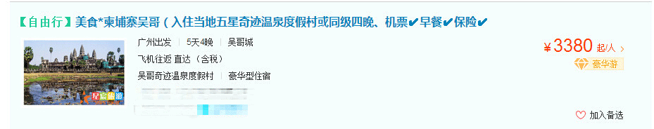 吴哥(奇迹温泉酒店)抵玩自由行双飞五天