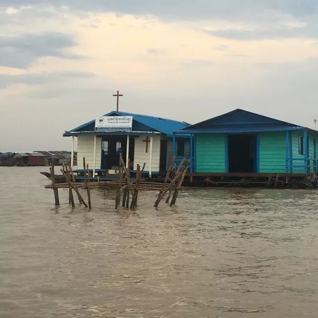 这边的居民大多是黑户啦......?? 上图是湖中的教堂⛪️ 住在这里的居民大约有3600+,他们的房屋会随着湖水的涨落而起伏。