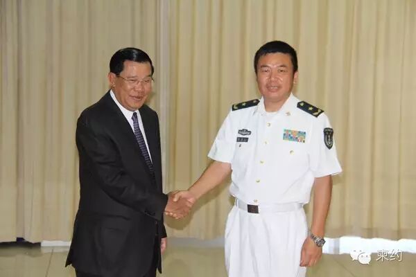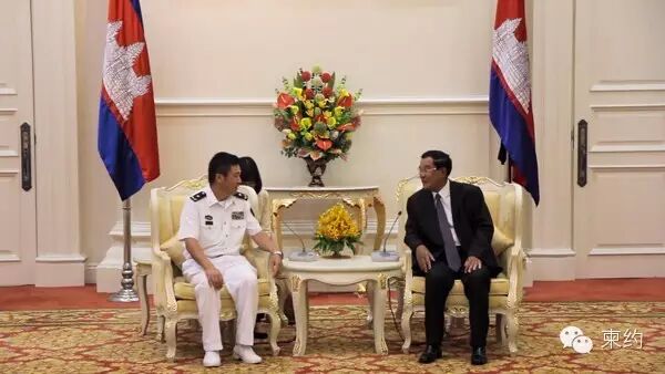 24日下午,中国海军第二十一批护航编队指挥员俞满江在柬埔寨金边首相府拜会了柬埔寨首相洪森。