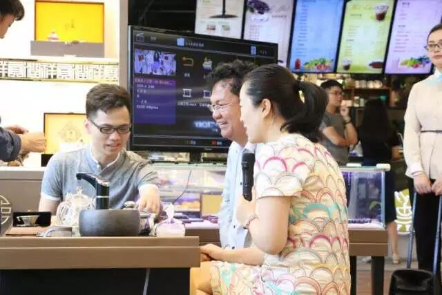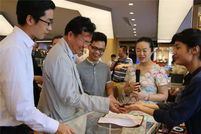 随后Noy先生一行来到了空港跨境二楼贡润祥专柜,Noy先生对于柜员拿出的紫檀手串爱不释手,连声赞叹。总经理李园园女士向Noy先生介绍了贡润祥主营产品普洱茶膏,并邀请Noy先生品尝了具有“太空第一杯茶”美誉的贡润祥普洱茶。