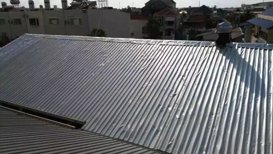 柬埔寨雨季时铁皮顶棚噪音非常大,使用本产品能降低噪音百分之五十