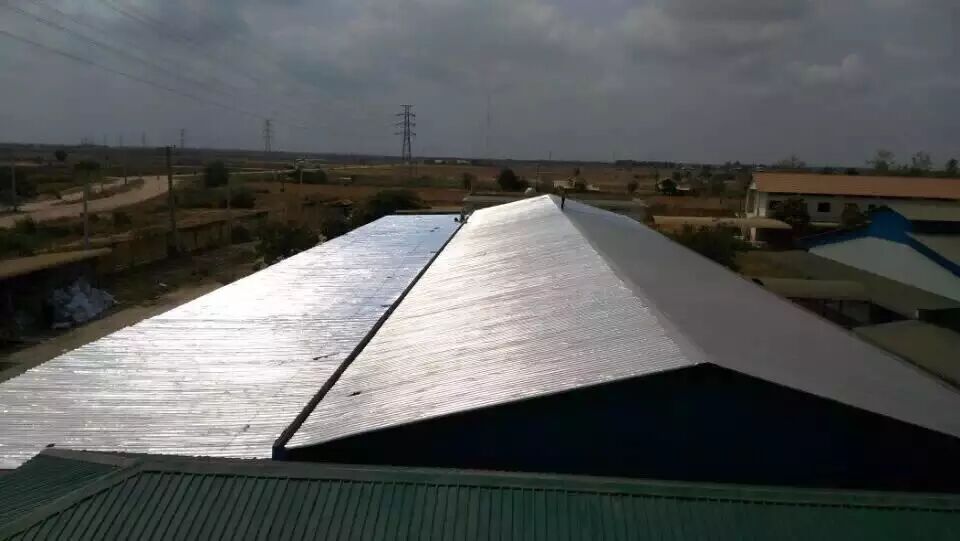 根据柬埔寨铁皮实测温度最高值能达到60°左右,使用本产品后最高40°左右