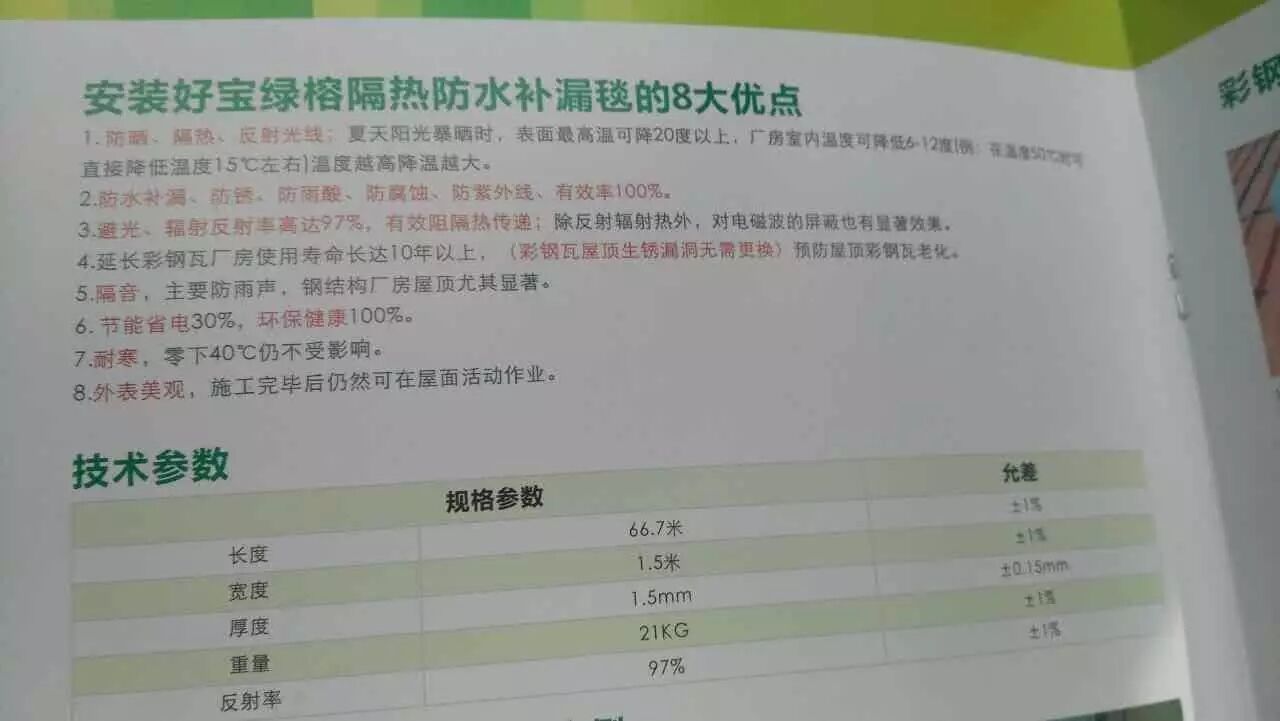 本公司专门销售屋顶防晒隔热材料,铁皮瓦屋顶隔热材料,小气泡铝隔热毯,大气泡铝隔热毯,地板铝隔热保温毯等隔热保温节能材料,并承接销售与现场施工业务。