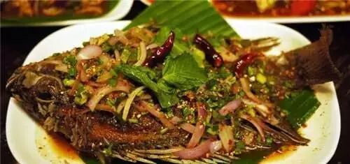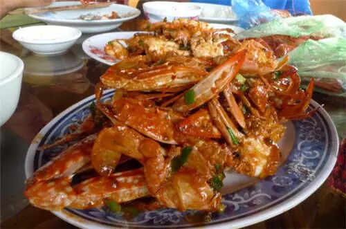 贡布出产上好的青胡椒,而且比柬埔寨其他地方离海要近,别的地儿主要吃河鲜,,不过贡布最出名的还是胡椒螃蟹。螃蟹在柬埔寨还有一种广受欢迎的吃法是“舂”,看过前几期东南亚美食或者到西双版纳旅游的对这个字眼大概不会陌生,用到“舂”法的,必须有柠檬和大芫荽,而且基本都是生吃。