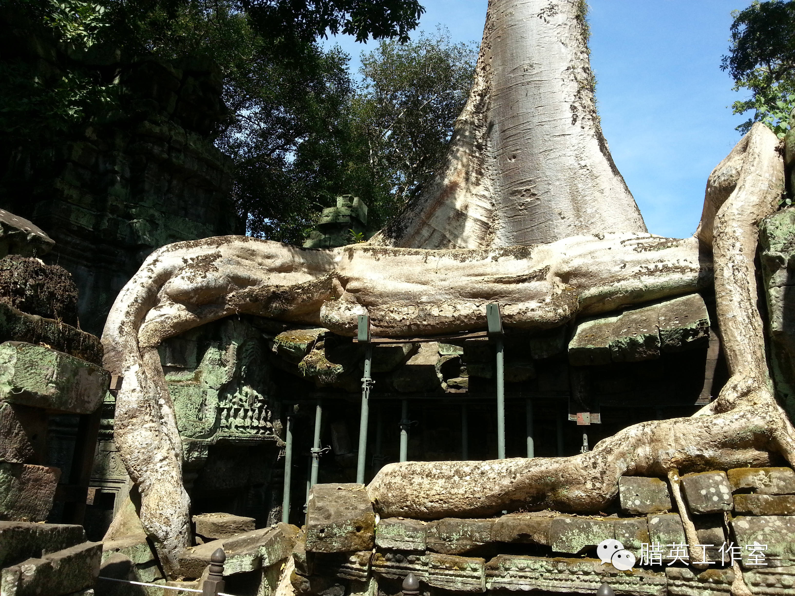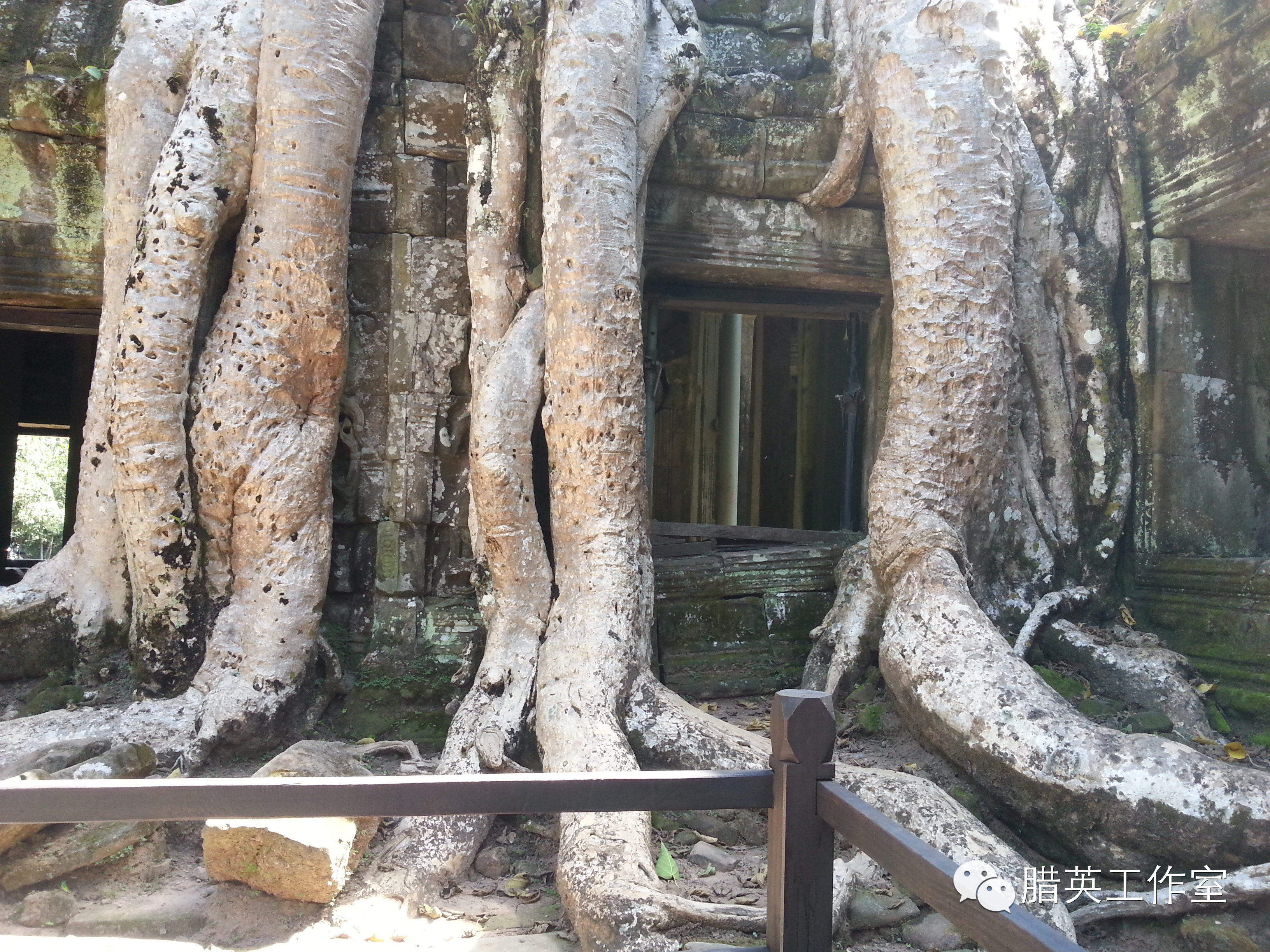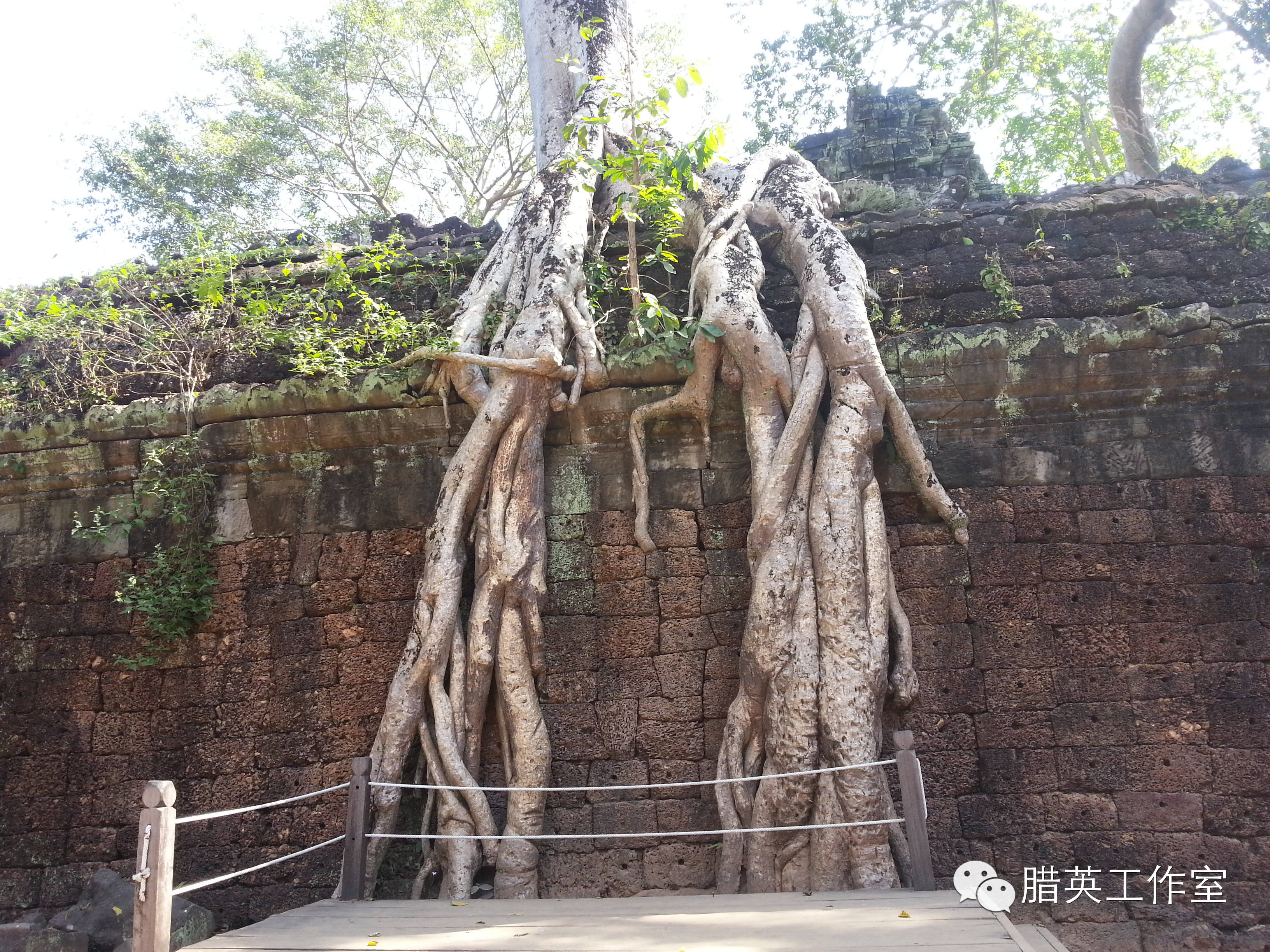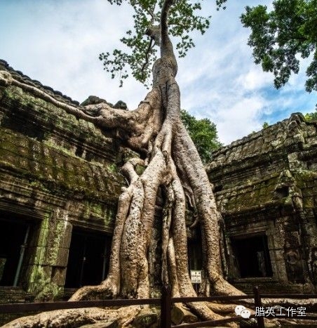 塔布茏寺(Ta Prohm):这里也是电影《古墓丽影》的外景地,它出名与电影《古墓丽影》有很大的关系,电影《古墓丽影》和《花样年华》曾在此取景拍摄。塔布茏寺如同睡美人的城堡,完全被丛林吞没。盘根错节的巨树缠绕着佛塔,占领了长廊,撕裂围墙,掀开石阶,探进门窗,举起房顶。无花果树和木棉树盘根错节在遗址上,建筑与丛林这种你中有我、我中有你的关系给保护工作出了一个大大的难题:坐视不管固然会古寺不保,强行分开也必然树亡寺毁。因此至今这种奇特的拥抱至今仍然保持原貌。整座寺庙与各式树的根茎极度纠缠、盘结、血肉相融又爱恨纠缠,确实难舍难分。