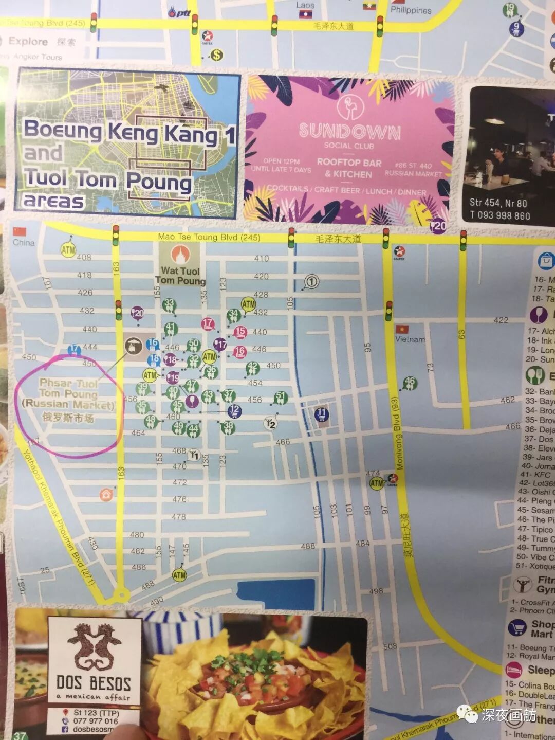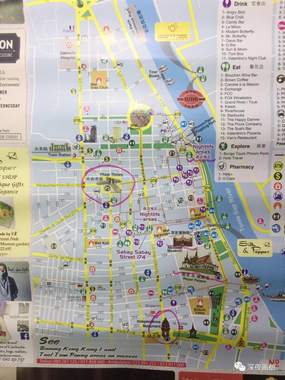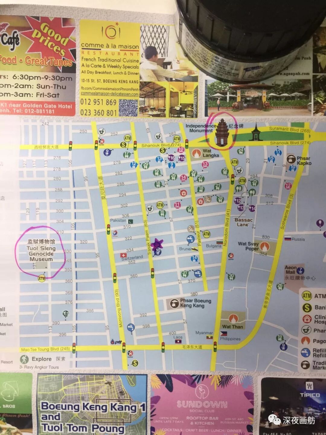 ▲这三张连起来就是金边的地图 粉色星星就是我们在金边的酒店 景点都标记了