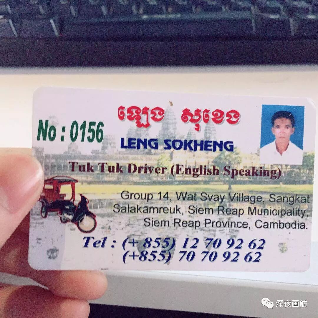 工具有TUTU车还有面包车,从酒店出发景区推荐TUTU车,类似国内的三轮车,一来可以领略路上的风景,二来司机服务态度超级好。我们去暹粒三天是同一个司机,手机落在车上,他会拿进景区给我们,因为天气热,司机有自带的小冰箱免费的矿泉水给我们喝。这里留一个司机的联系方式,去暹粒预定他的车可以报我的名,临走时跟他说过,我朋友过来会推荐他负责接送。