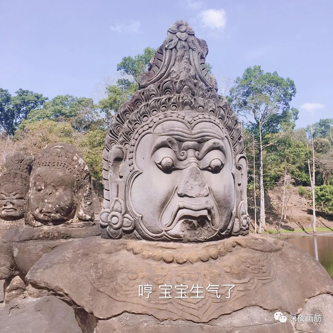 PS:巴戎寺坐落于通王城中心点,进入通王城会经过南城门,通王城桥两侧有27座雕像,面带微笑的是天神,面带凶恶、怒目直视的是阿修罗,仔细观看你会发现27个雕像,没一个面容是一样的,这里有最最著名的“高棉的微笑”。