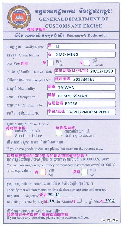 ▲海关申报表是提了行李以后出机场的时候用,有人在那里收,直接递给那个人就行。