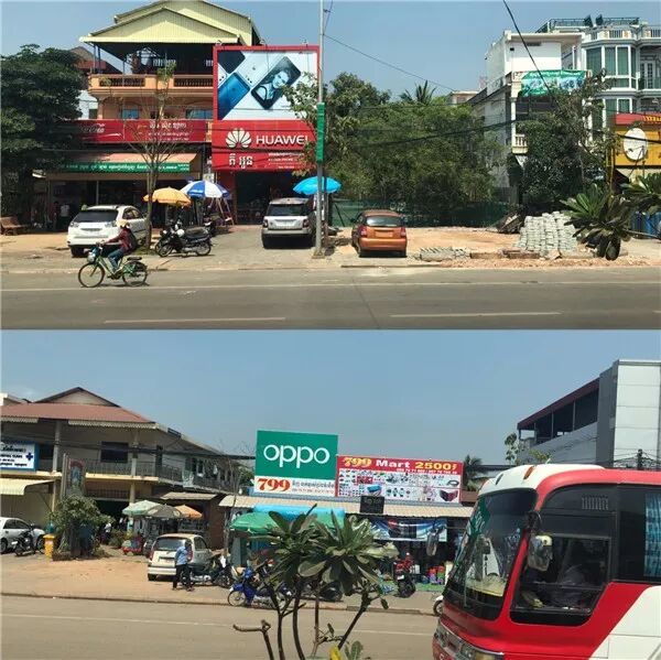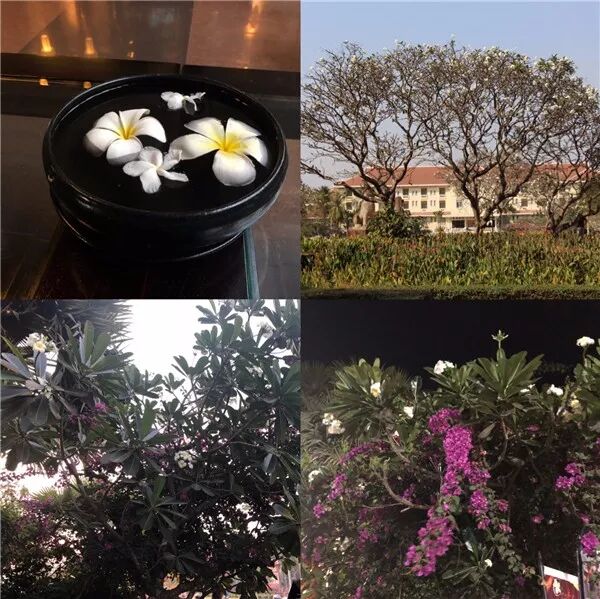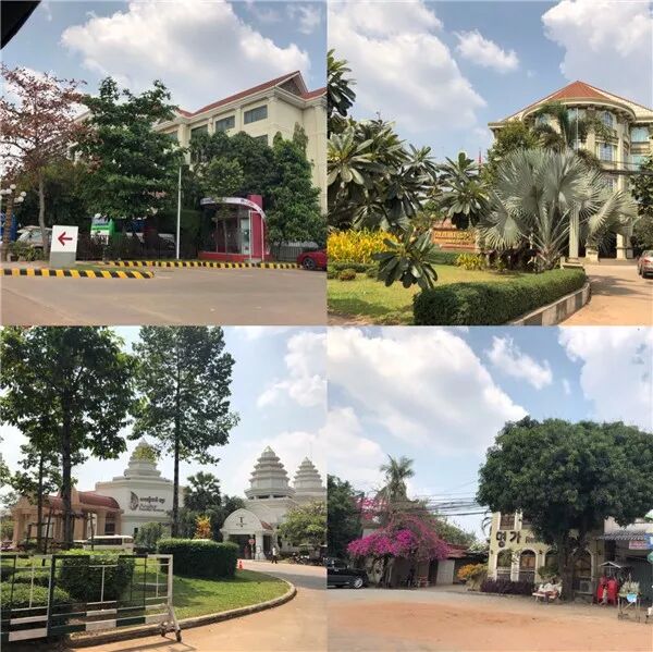 沿着公路两侧,一家接一家的是具有泰柬风味的各式精美酒店,异域风格的建筑和热带的绿树繁花辉映在蓝天白云下,有种宁静的美好。