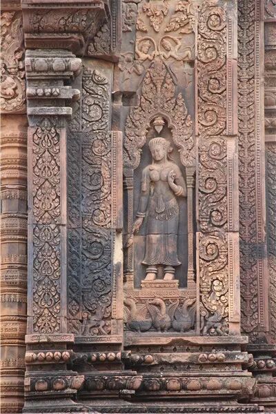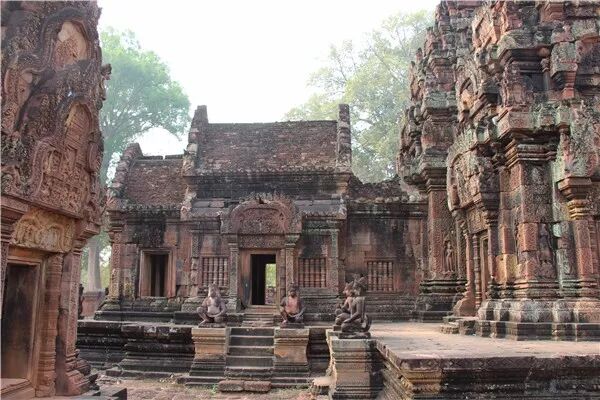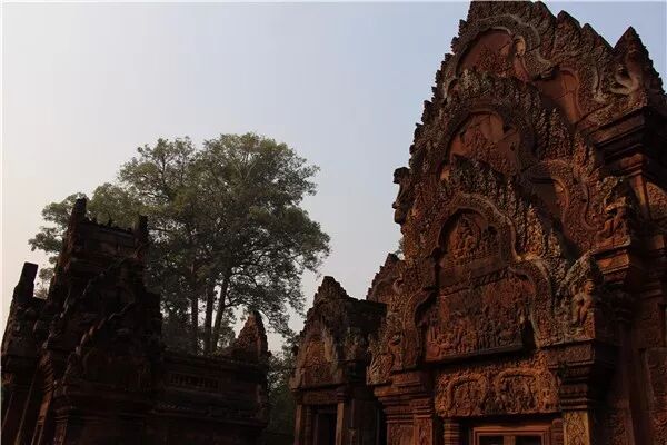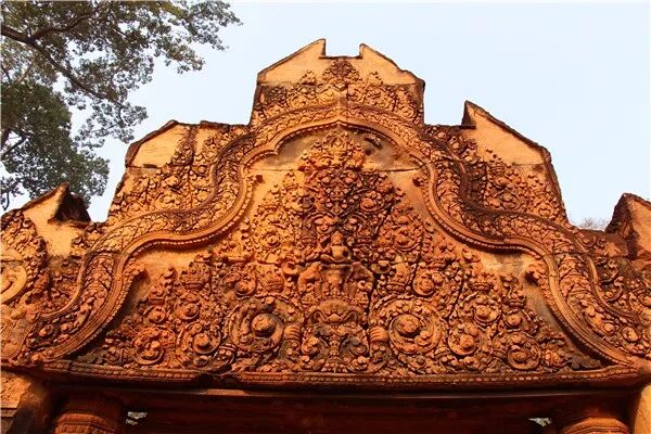女皇宫以精美细腻的雕刻、繁复柔美的造型和艳丽的色泽闻名,在所有吴哥浮雕中首屈一指,被誉为“吴哥艺术之钻”。