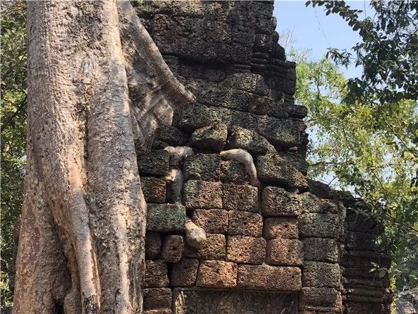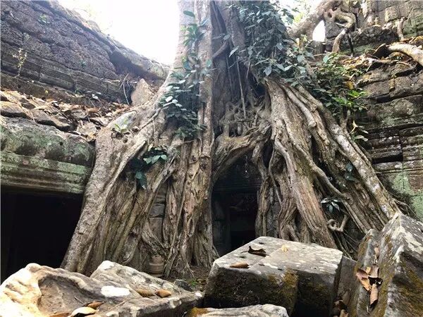 这里随处可见树缠着石壁或是石壁包裹着树木的景象。起初,人们认为树的疯长破坏了古迹的石墙,但后来,却发现正是树的缠绕,反而对墙壁起到了保护作用。